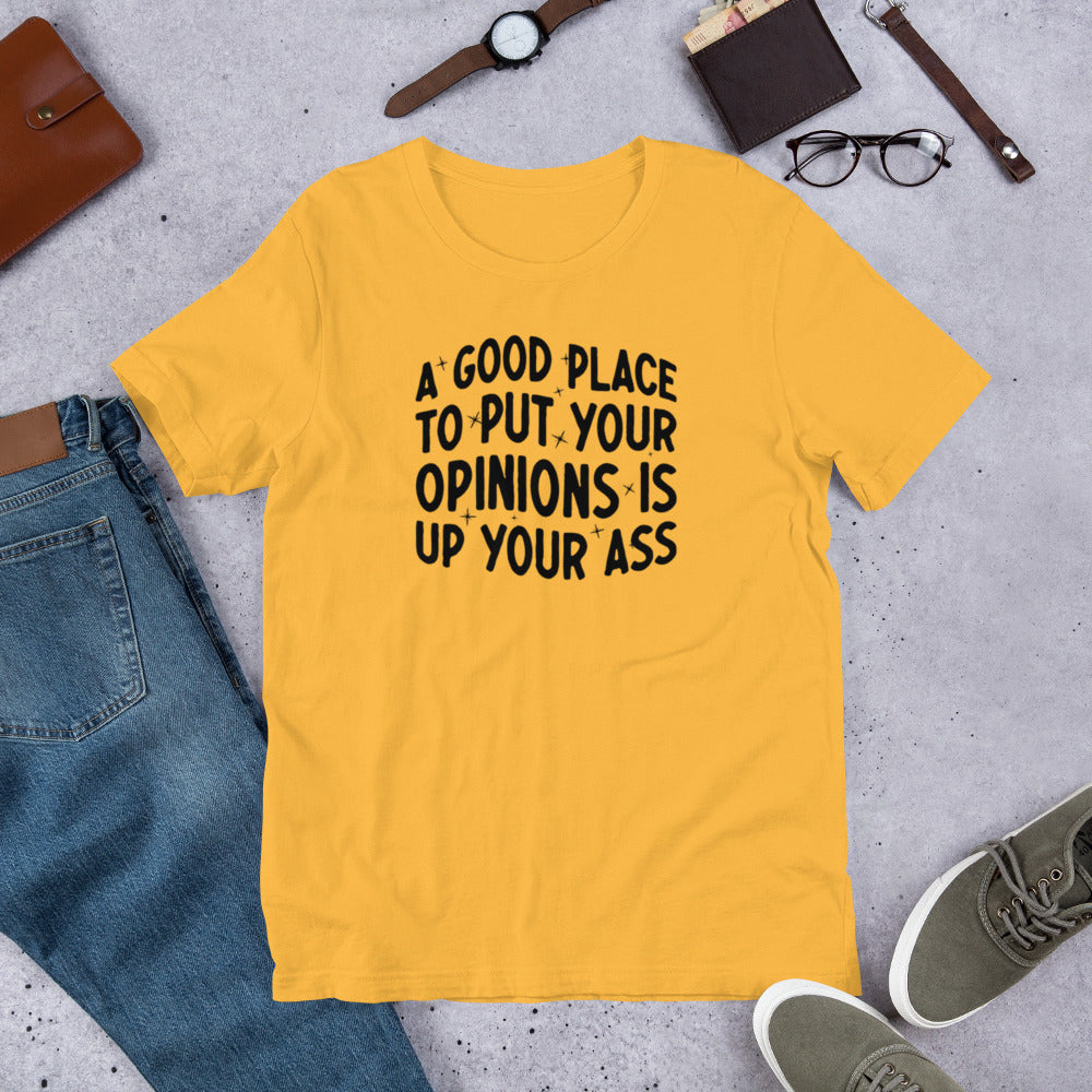 Sometimes silence is golden — and sometimes a shirt does the talking. Our “A Good Place To Put Your Opinions” design printed on t-shirt delivers bold humor with unapologetic confidence. This tee is soft, lightweight, and perfectly stretchy, making it comfortable and flattering for everyday wear. Ideal for casual outings, social situations, or anyone who prefers their boundaries crystal clear.