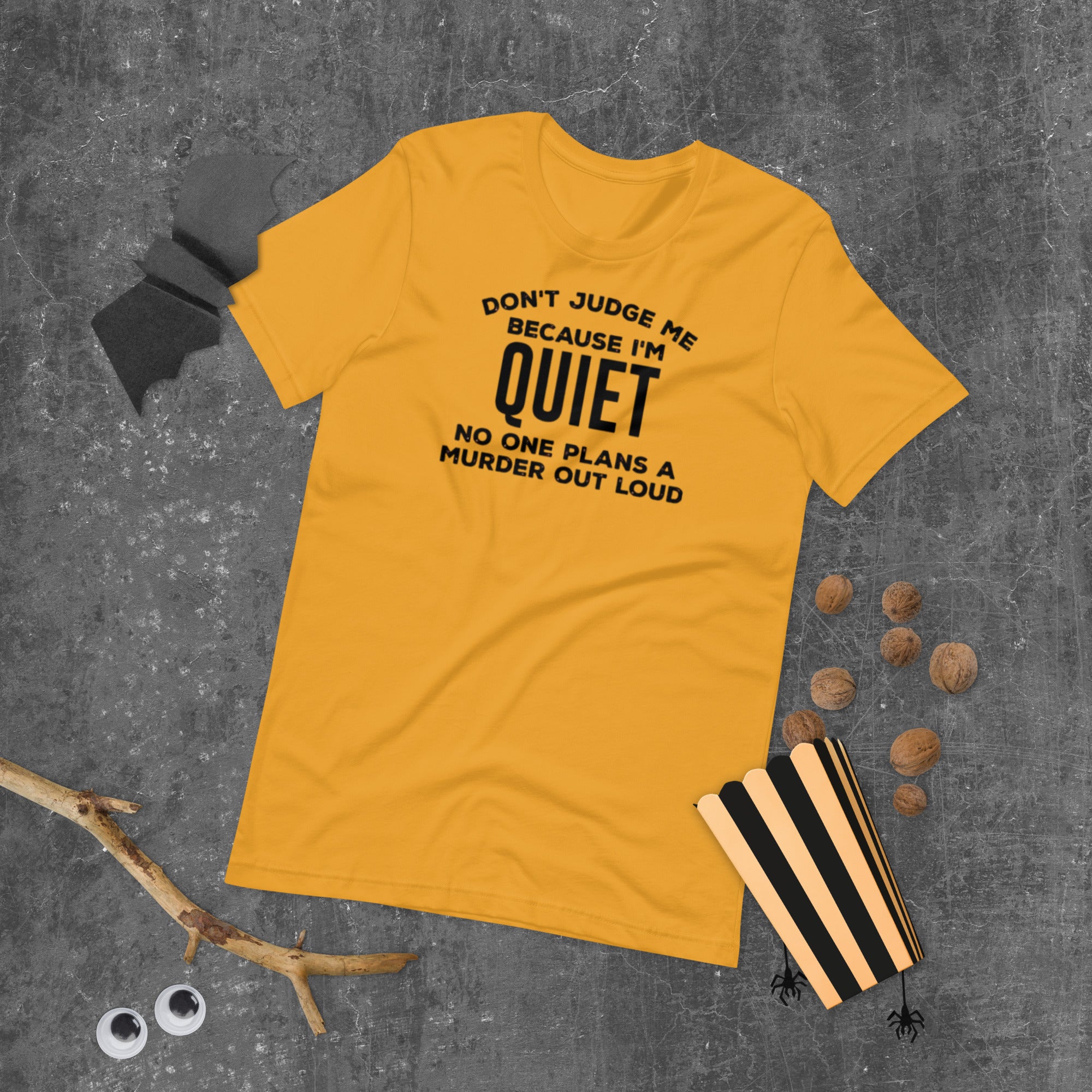 Introverts, this one speaks for you — so you don’t have to. Our “Don't Judge Me Because I'm Quiet” design printed on t-shirt is perfect for subtle personalities with a lot going on internally. Lightweight, soft, and ultra-comfortable, this tee is a great everyday wear choice for work, school, coffee runs, or relaxing days. A great conversation starter, or conversation avoider, depending on your vibe.