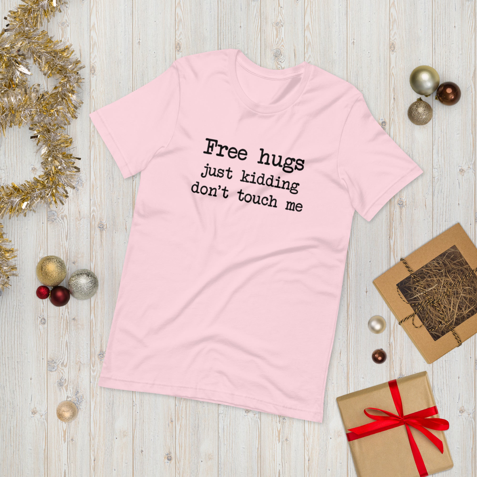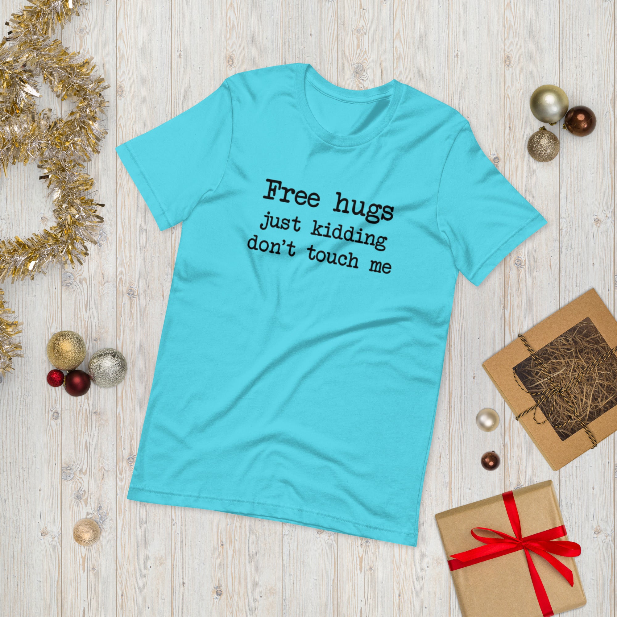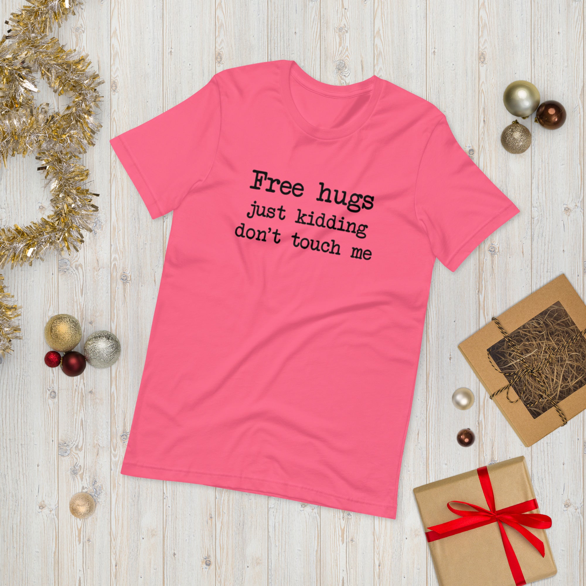 Approachable… but not really. Our “Free Hugs – Just Kidding” design printed on t-shirt is perfect for introverts, sarcasm lovers, and anyone who values personal space. Lightweight and comfortable, it’s a fun everyday tee that sets boundaries with a smile.