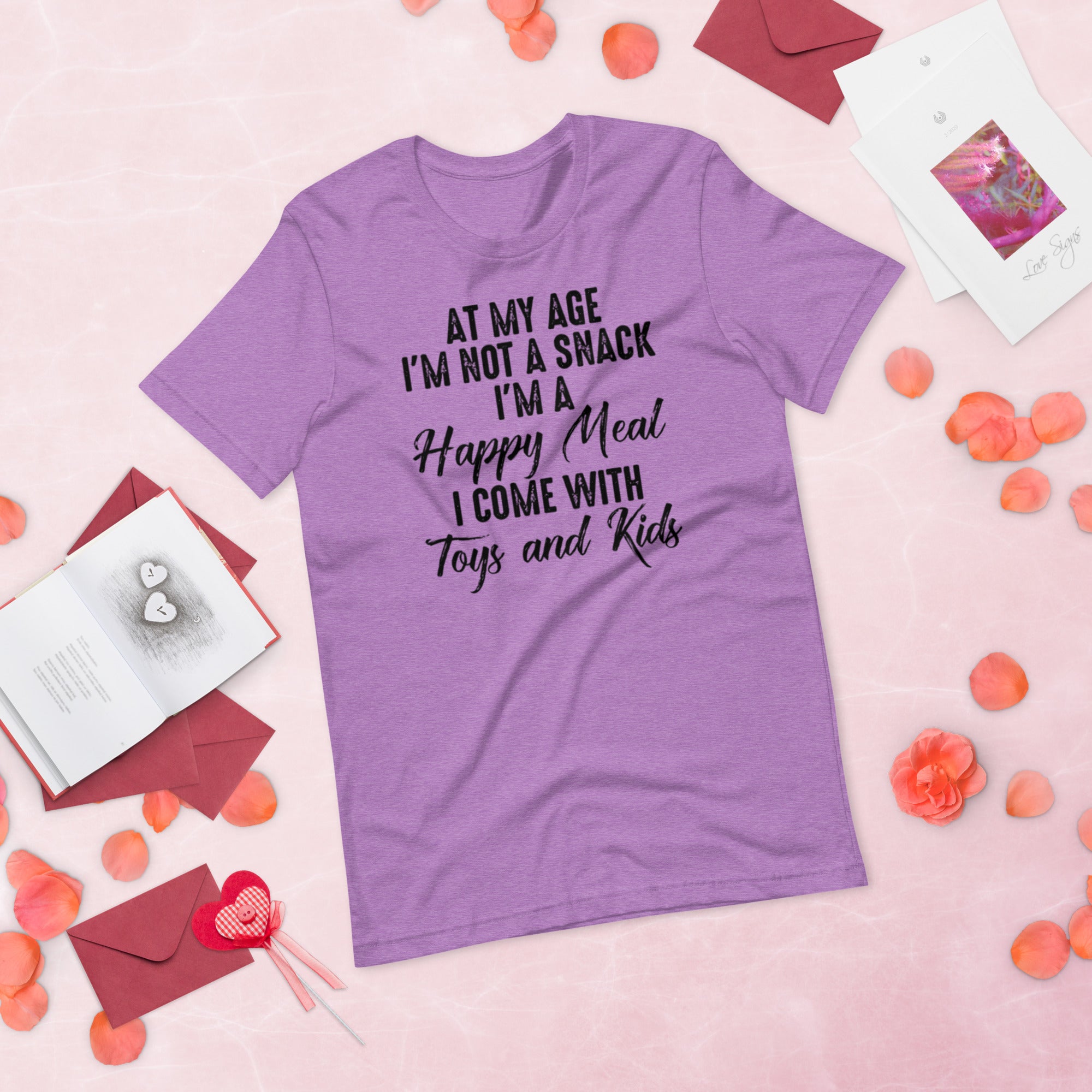 Cute, fun, and full of personality. Our “I’m A Happy Meal” design printed on t-shirt brings playful humor to a comfortable everyday tee. Soft, breathable, and flattering for all, it’s perfect for casual outfits, lounging, or gifting someone who brings joy wherever they go.