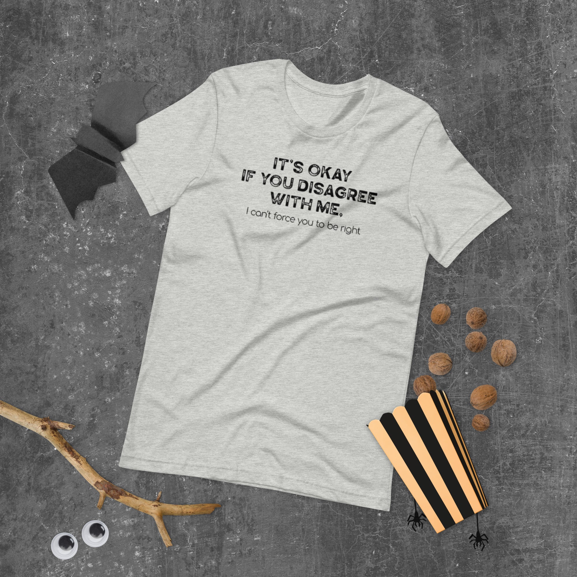 Confidence meets sarcasm with this one. Our “It's Ok If You Disagree With Me” design printed on t-shirt says what many are thinking — respectfully, of course. This tee is soft, comfortable, and flattering for all body types, making it perfect for casual outfits, daily wear, social situations, or gifting to someone who stands firm in their opinions.
