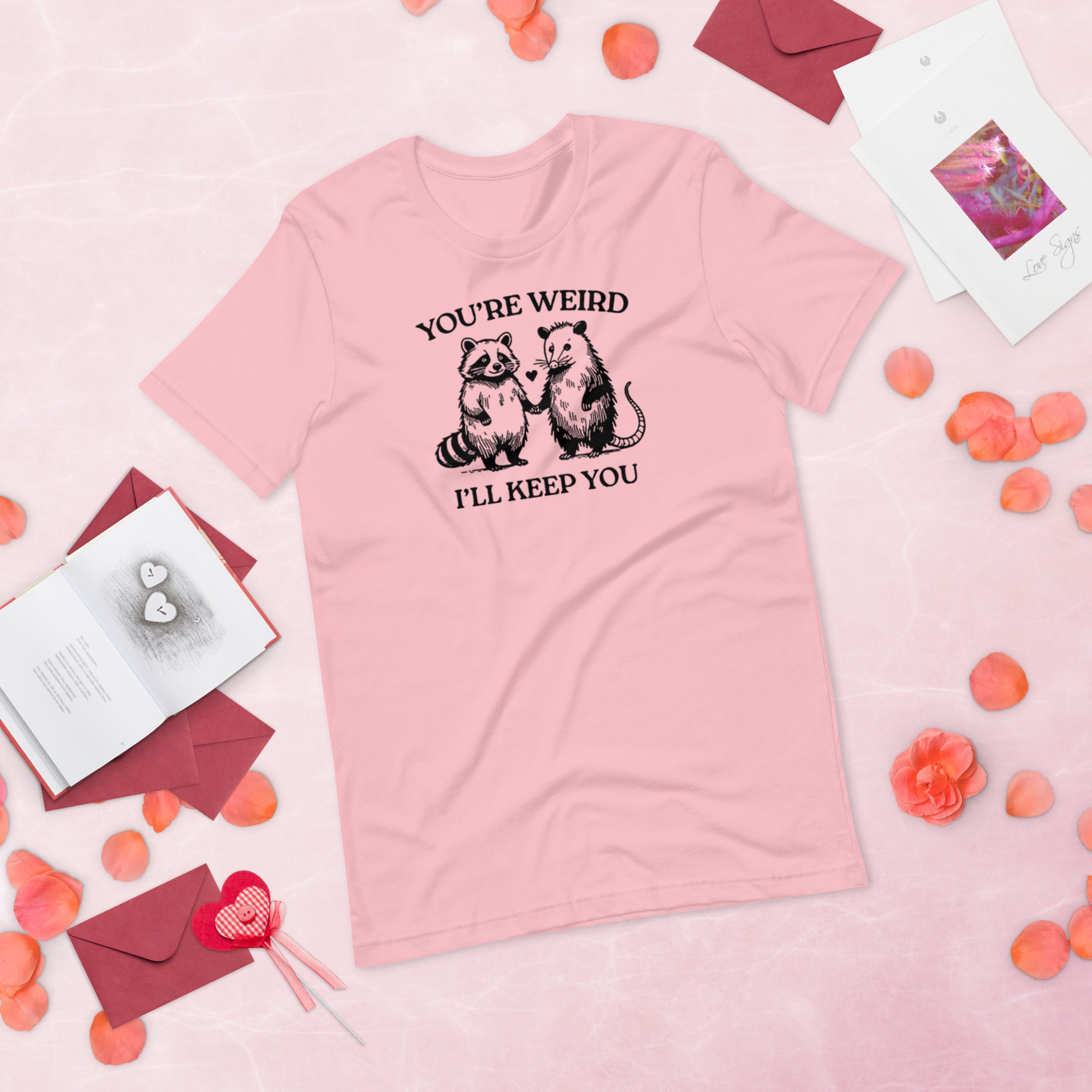 Cute, quirky, and filled with charm — our “You're Weird I'll Keep You” design printed on t-shirt is perfect for couples, friendships, and lovable weirdos everywhere. Soft, breathable, and comfortable for all-day wear, it's a great piece for dates, gifting, anniversaries, or simply showing appreciation for someone delightfully strange.